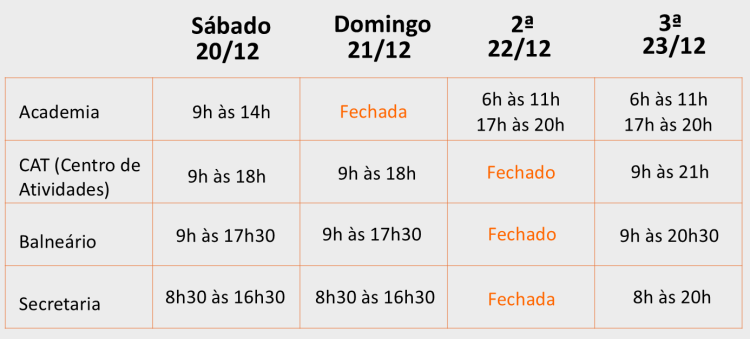 | Modalidade especial de 45' a 90' | GAP | 2ª, 4ª e 6ª às 18h30 |