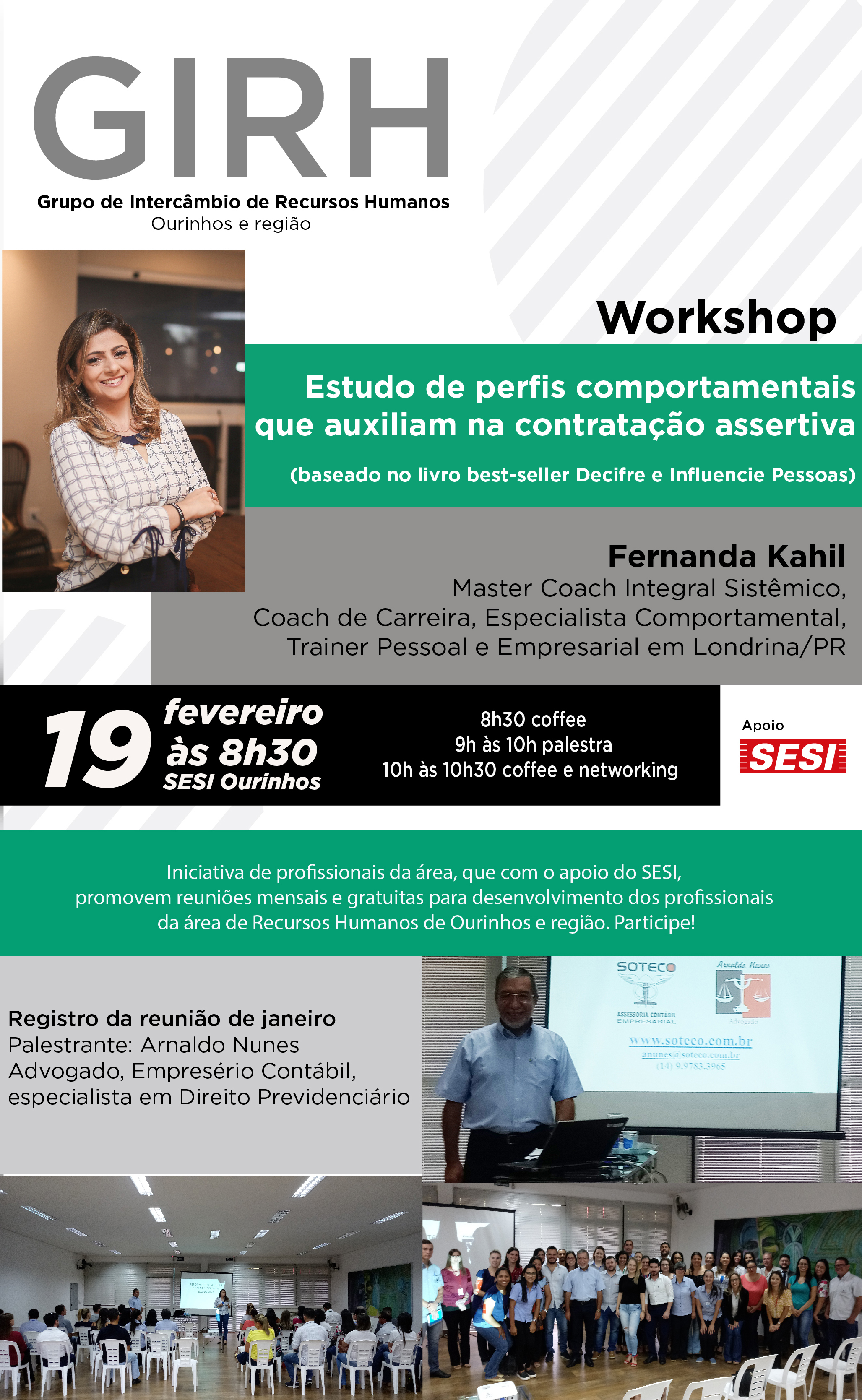 O próximo encontro, idealizado pelo Grupo de Intercâmbio de Recursos Humanos de Ourinhos e região, será no dia 19 de fevereiro (quarta-feira), às 8h30, no SESI de Ourinhos.